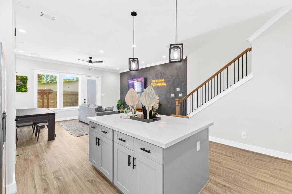 ✨ Welcome to Your Ultimate Houston Getaway!✨ Get ready to relax, recharge, and have a blast at this vibrant, amenity-packed home—perfect for families, friends, and business travelers alike! 🎉 🌟 Why You’ll Love It 🌟 🔑 Keyless Entry – Skip the hassle! Check-in is a breeze with our smart lock system. 🏊♂️ Stock Tank Pool – Cool off and unwind in our eye-catching orange-themed pool! 8ftx8ftx2ft. (under maintenance until further notice) 🚀 Blazing-Fast Wi-Fi (500 Mbps!) – Whether you’re streaming, working, or gaming, enjoy seamless connectivity. ☕ Free Coffee & Tea Bar – Start your day with a fresh cup of coffee or tea—on the house! Keurig pods, sugar, creamer, and tea bags provided. 🔥 BBQ & Patio Vibes – Fire up the charcoal grill and enjoy a laid-back evening on the spacious patio. 🎬 Entertainment Hub – 5 Roku Smart TVs mean endless binge-watching and movie nights for everyone! 🎲 Game Room Galore! – Show off your skills with billiards, ping pong, bucketball, life-size Jenga, and board games for non-stop fun! 💫 Explore Houston Like a Local! 💫 🏞 Discovery Green – 5 min drive | 2.5 miles 🏙 Downtown Houston – 7 min drive | 3.5 miles 🏀 Toyota Center – 6 min drive | 3 miles 🎨 Museum of Fine Arts – 6 min drive | 3 miles 🌳 Buffalo Bayou Park – 10 min drive | 5 miles 🛍 The Galleria – 15 min drive | 8.75 miles 🏈 NRG Stadium – 18 min drive | 10.5 miles 🚀 Space Center Houston – 30 min drive | 30 miles 🌟 Whether you’re here for a relaxing retreat, a fun-filled adventure, or a business trip, this stylish space has everything you need for an unforgettable stay! 📅 Book now and experience Houston in style! ✨🏡